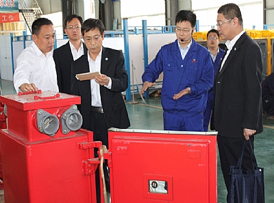 棗礦集團(tuán)董事長(zhǎng)、黨委書記劉成錄(左三),總經(jīng)理、黨委副書記滿慎剛(左四),副總經(jīng)理殷濤(左一),新遠(yuǎn)大公司董事長(zhǎng)(左二),黨委書記王培剛(后右)到公司親切指導(dǎo)。公司經(jīng)理羅賢峰(右二)陪同指導(dǎo)。