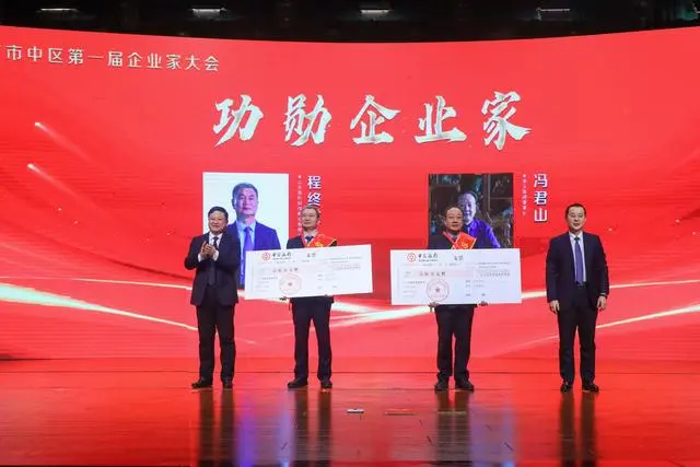 市中區(qū)委、區(qū)政府決定授予程終發(fā)、馮君山2名同志“市中區(qū)功勛企業(yè)家”稱(chēng)號(hào),每人獎(jiǎng)勵(lì)稅后100萬(wàn)元;授予牛迎東等4名同志“市中區(qū)優(yōu)秀企業(yè)家”稱(chēng)號(hào),每人獎(jiǎng)勵(lì)稅后20萬(wàn)元;授予李永利等13名同志“市中區(qū)行業(yè)領(lǐng)軍企業(yè)家”稱(chēng)號(hào),每人獎(jiǎng)勵(lì)稅后10萬(wàn)元,授予相增和等15名同志“市中區(qū)行業(yè)領(lǐng)軍企業(yè)家(提名獎(jiǎng))”,并向有關(guān)企業(yè)負(fù)責(zé)人頒發(fā)企業(yè)家服務(wù)“綠卡”。