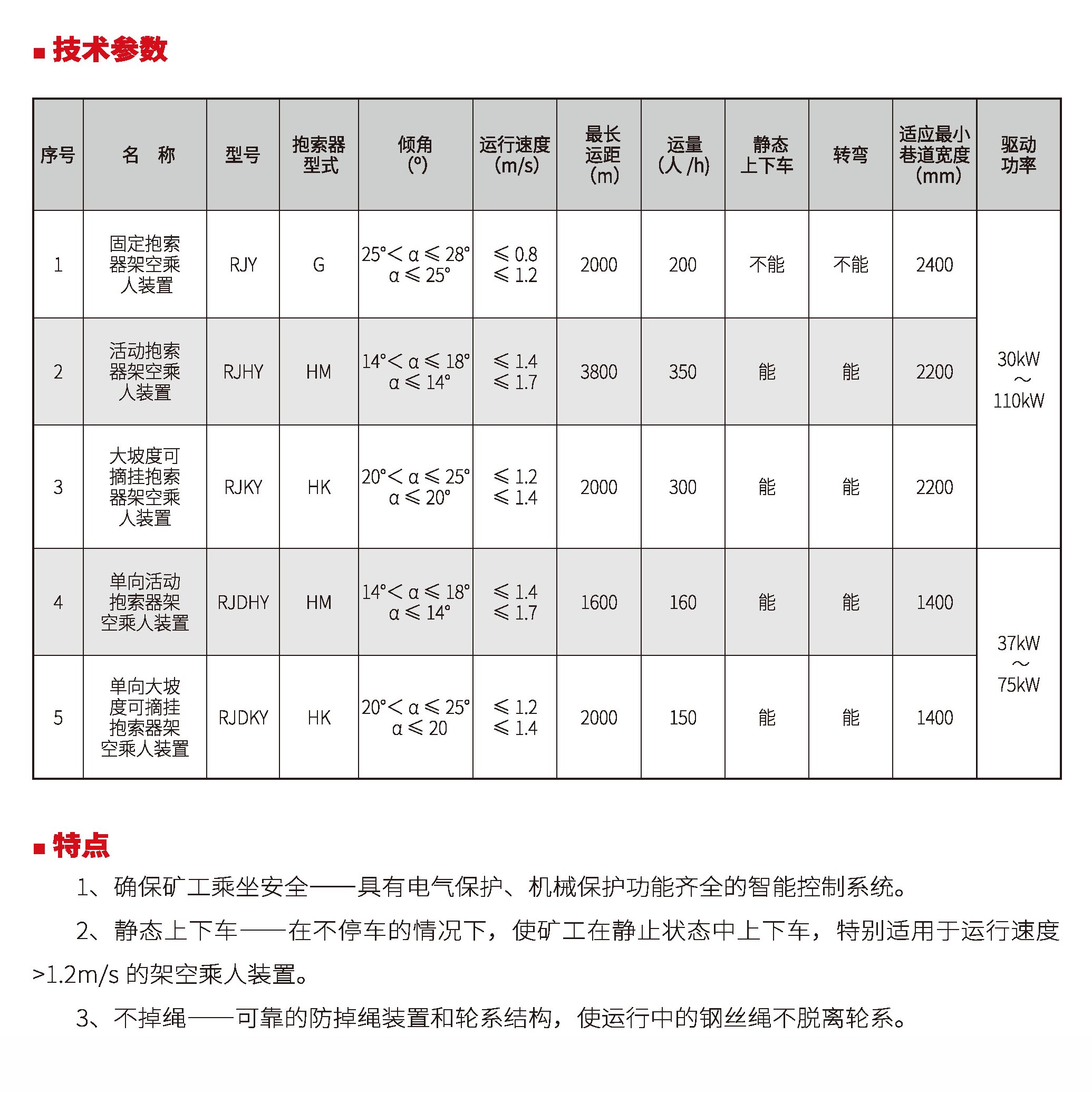 煤礦井下架空乘人裝置安標(biāo)型號一覽表
